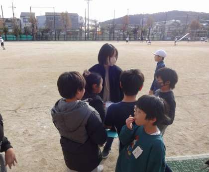 担当の先生にクラブについて質問している子どもたちもいました。