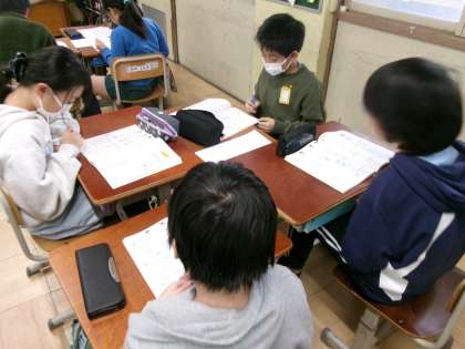 算数で「直方体と立方体」の学習をしています。今日は、「直方体」「立方体」や「平面」という新しい言葉を覚えたり、辺や面、頂点の数を数えたりしました。新しい言葉をしっかり覚えながら学習を進めていきたいです。