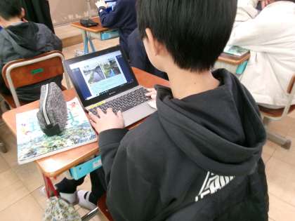 土地のつくりと変化についての学習がスタートしました。今日は、最初の1時間目ということで、2つの川の様子の写真を比べて気付いたことを出し合い、これから学習していく内容を確かめました。