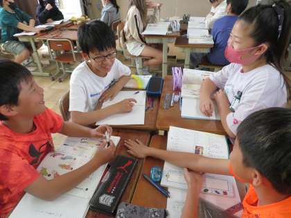 今日から国語科の学習が始まりました。みんなで一文ずつつないで、お話を作りました。どんなお話ができたのか、次の時間に班ごとに発表をする予定です!