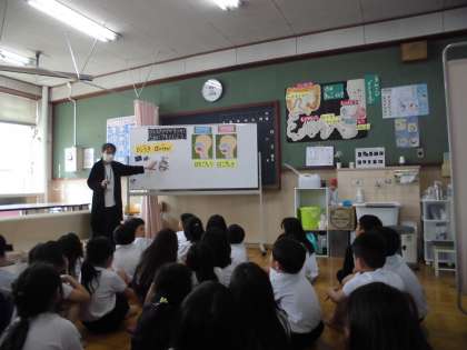 身長・体重を測る前に、養護教諭の塩見先生から口を閉じる大切さを教えて下さいました。
