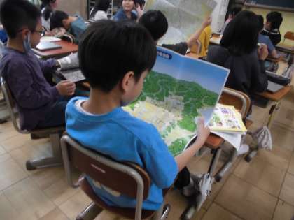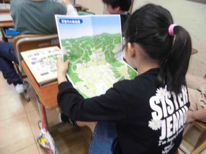 社会の学習が新しくスタートしています。まずは学校周辺を調べ、次に自分たちの住む京都市について調べています。今日は、地図帳やタブレットを使って調べました。これから詳しく調べていきたいです。