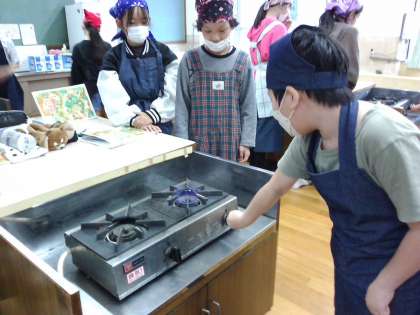 安全にガスコンロを使う練習をしました。