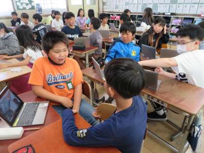 子どもたちは、6年生になって外国語にも力を入れ、学習に一生懸命取り組んでいます。出身や住んでいる場所、興味のあること、得意なことを友達に伝えることができました。子どもたちの中には、「Oh,nice!」と反応している子もいました。