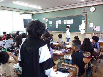 英語で教科の名前を言うゲームを行いました。