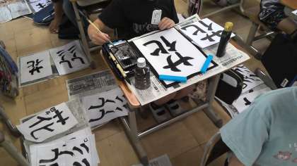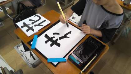 書写の学習で「花」を書きました。美しい字を目指し、折れやはねなどに気をつけながら書きました。より美しい字を書くために、これからも書写を頑張ります。