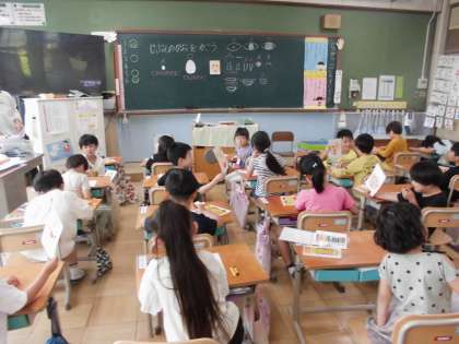 図画工作の時間に自分の顔を描きました。耳や眉毛、目や鼻など、1つ1つ順番に、丁寧に描くことに気を付けました。個性豊かな、素敵な作品が仕上がりました。