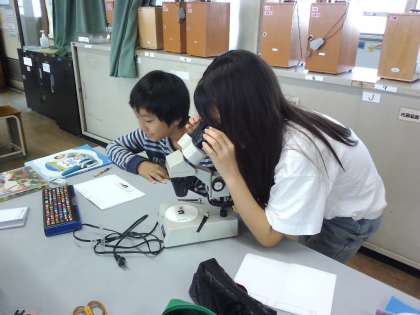 双眼顕微鏡で、たまごの観察をしました。