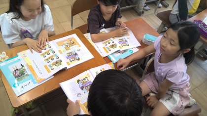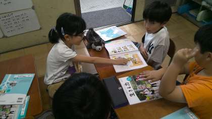 挿絵を見て色々な人の気持ちを考え、グループや全体で話合いをしました。