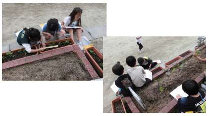今日は、観察すると決めた植物や生き物をしっかりと観察をし、ノートにメモをとって、タブレットで写真を撮りました。