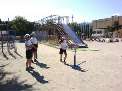 ボールを玉入れの玉で行っているので、安心して活動できるようです。