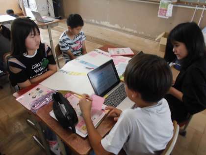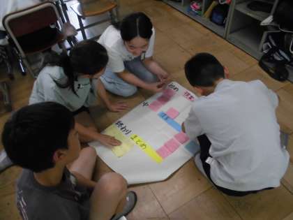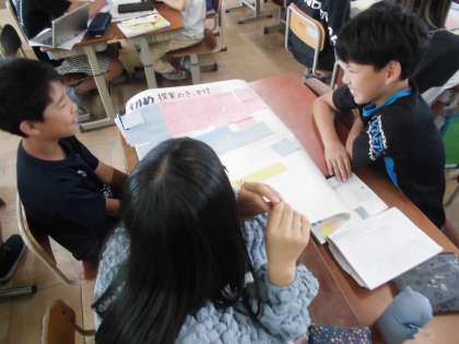構成を考えて提案する文章を書く、という学習をしています。自分たちの伝えたいことをより上手に伝えられるように、内容や構成などをグループで考えています。良い提案ができるようにがんばっていきたいです。