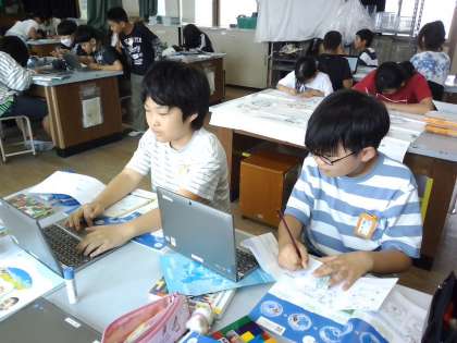 GIGA端末を使って、調べていました。学習意欲が高まっています。