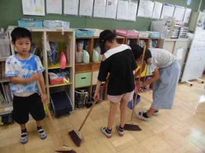 自分たちで使う教室をしっかりきれいにしています。低学年も少しずつ戦力になってきています。