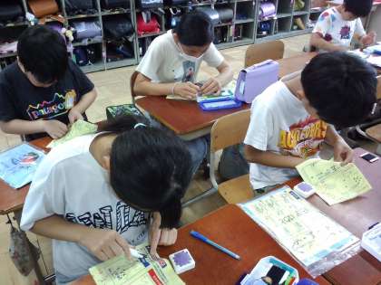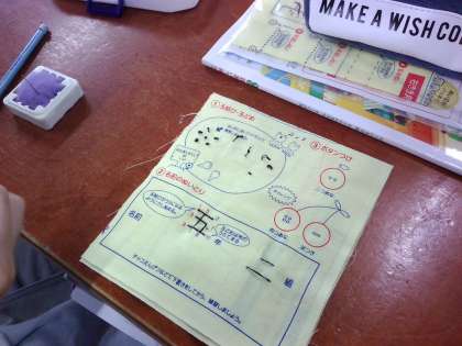 チャコペンシルを使って布に字を書くのも、「難しい」と言ってました。