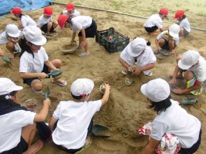 水やしゃぼん玉、土・砂を使って遊びました。どの活動もとても楽しそうに取り組んでいる様子でした。