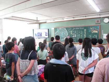 また、生徒指導担当の先生と養護の先生から、夏休み明けの学校とお家での過ごし方についてお話を聞きました。まだまだ暑くてリズムがなかなか戻りませんが、早寝早起きやごはんをしっかり食べること、熱中症にも気を付けながら少しずつ学校生活のリズムに戻していきましょう。ご家庭での健康観察も引き続き,よろしくお願いいたします。