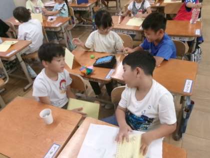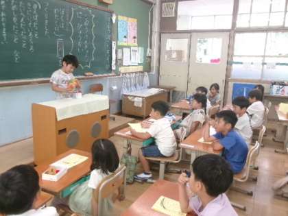 国語の「みんなにしらせよう」の学習では、夏休みの思い出を発表したり、自由研究・工作の作品を交流したりして、みんなで盛り上がりました。