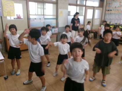 今日は、音楽に合わせてみんなで身体を動かして踊りました。