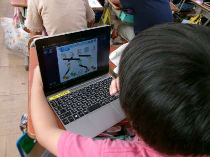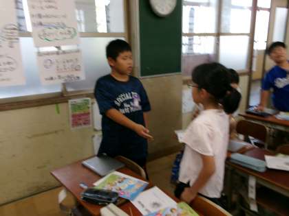 外国語活動では、好きなものを尋ねたり、答えたりする学習をしています。「What 〜do you like?」の表現を使って、友だちに好きなフルーツを聞くことができました。また、動画を見て、誰がどんなものが好きなのかを聞き取り、タブレットを使って線で結ぶこともできました。2学期に入り、英語を話したり、聞き取ったりすることに慣れてきたようです。