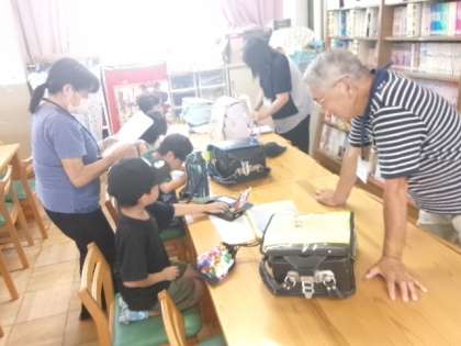 図書室につくと、参加カードを提出したり、名簿に自分が来た時刻を記入したり、放課後まなび教室の勉強の仕方を聞いたりしました。