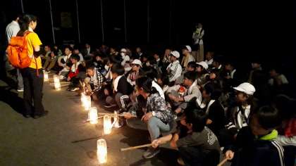 すっかり日も落ちて辺りは暗闇に包まれました。虫の鳴く音色や風の音、匂いなどを感じながら森の道を歩きました。