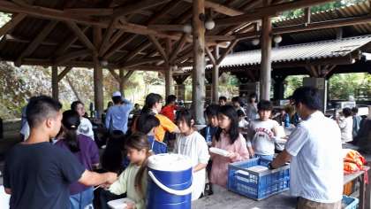 今日の昼食は食堂ではなく野外炊事場で食べます。