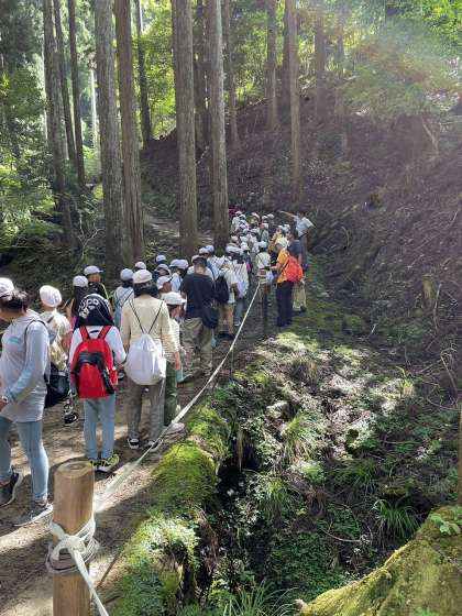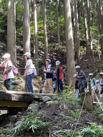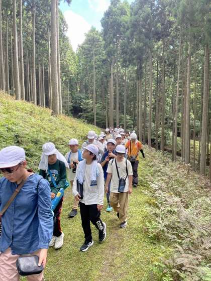 昼からはハイキングです。山の家の所員さんからお話を聞いて活動開始です。