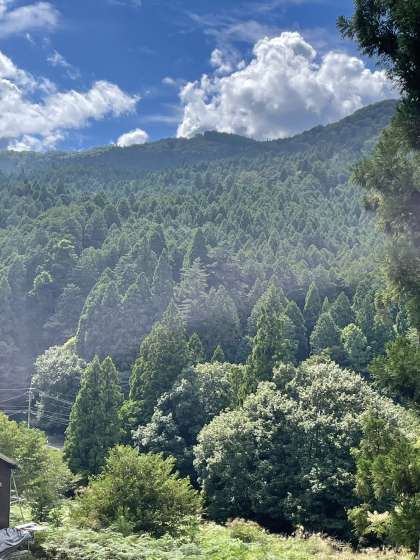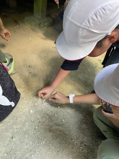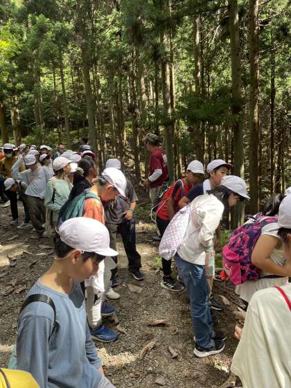 ハイキングの途中で今日登山する予定だった天狗杉の頂上を見ました。蟻地獄も見つけるなど自然を満喫しました。
