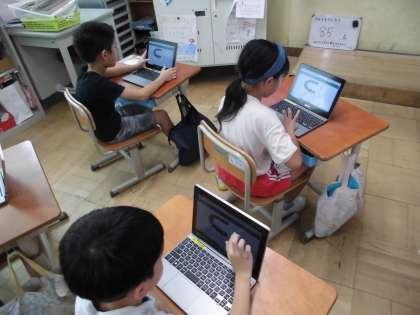 次にタブレットを使って、数図ブロックを操作し、何人の何台分なのかを、学級のみんなで確認しました。