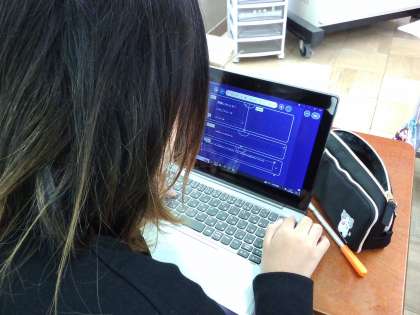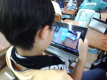できた商品は、GIGA端末のアプリケーションを使って、「どの層に向けての商品か」「コンセプトは」「キャッチコピーは」など、かんたんなプレゼン資料を作って、みんなで共有して見れるようにしました。この後、みんなでGIGA端末でアンケートを作り、だれの商品がいいか投票したいと思います。