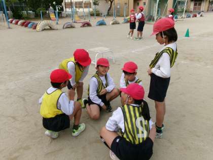 ポートボールでは、パスを回して、グループのみんなが得点をとれるように工夫しながらゲームに取り組めるようになってきました。ゲームの始まる前や合間には、チームで集まり、どのようにすれば得点をとれるのか話し合う姿も見られるようになってきました。
