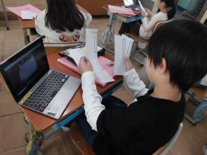 以前生活科で作ったおもちゃの作り方の説明書を作っています。