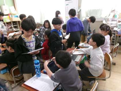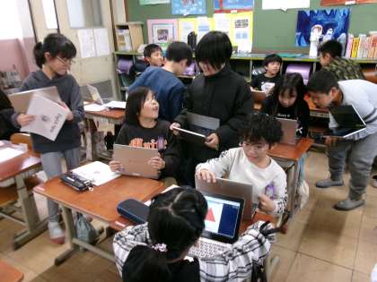 外国語活動では、グリーティングカードを作るために必要なカードを友だちからもらう活動をしました。誰がどのカードを持っているのか分からないので、自分が欲しいカードをもらうために、たくさんの友だちと交流することができました。次の時間は、友だちからもらったカードを使って、グリーティングカードを作って紹介する活動をします。どんなグリーティングカードできるか楽しみです。
