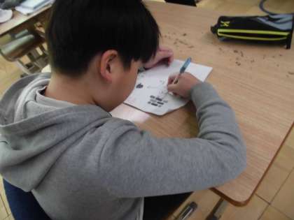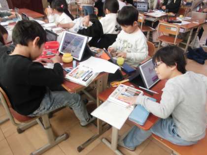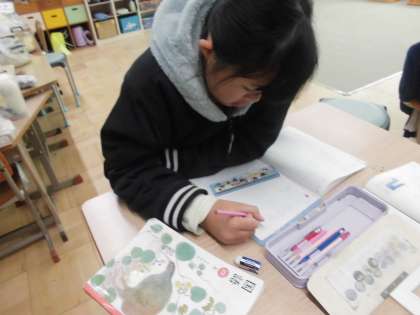 それぞれの課題に取り組んでいます。2年生は生活科の町探検の学習を交流学級で頑張っています。