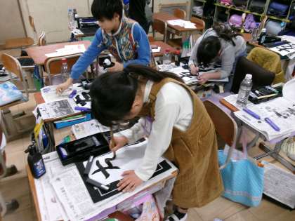 今年初めての書写の学習では、書き初めをしましました。初めて書く画仙紙に少し戸惑いながらも丁寧に書こうとする姿が見られました。