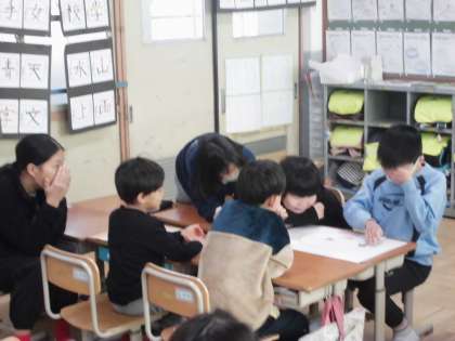 みんなでお正月遊びをして、ほっこりと楽しいひとときになりました。遊びお終わった福笑いは、1年生にプレゼントしてもらい大喜びの子ども達でした。