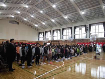 本日、体育館の完成式を行いました。児童会の5、6年生が中心となって進めてくれました。みんなきれいで新機能が満載の体育館にびっくりしているようでした。みんなで協力してこれからもきれいな状態を保っていってほしいです。最後には各クラスの代表による記念植樹も行いました。