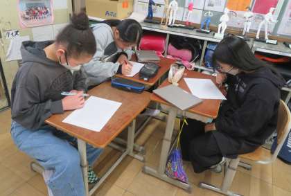 国語科の学習では、これからの生活で子どもたち自身が大切にしたい言葉を文章でまとめました。今日は、友達から「経験と一緒に気持ちも書くほうがいいよ」などのアドバイスをもらって、清書をしました。
