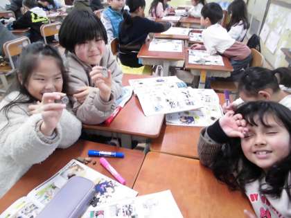 その小さな友達の顔を書いて、その友達の家を考えました。