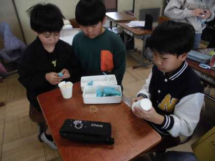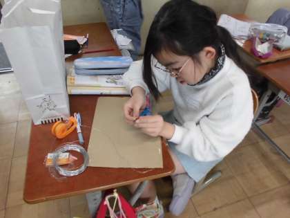 理科の学習でオリジナルのおもちゃ作りをしています。計画を立てて自分のイメージ通りのおもちゃを作ろうと頑張っています。