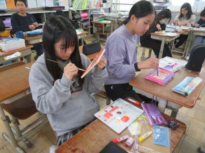 今日は6年生最後の図工の作品作りをしました。小学校の思い出や好きな模様をフォトフレームに書き、絵の具で丁寧に色を塗りました。小学校の思い出を飾ってもらえると嬉しいです!
