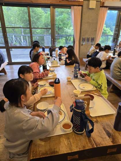 入浴が終わり夕食です。「山の家最高。」とみんなで食べる楽しさを味わっています。