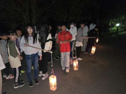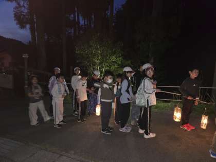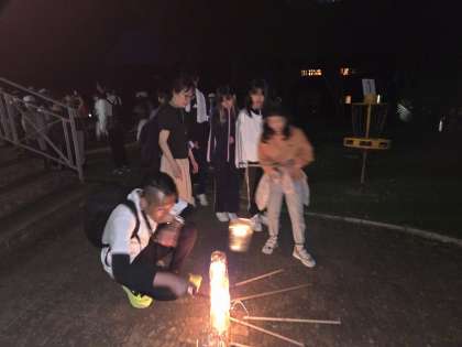 班に一つランタンを持ってハイクコースを歩きます。虫の鳴き声に耳をすませたり、星空を観察したりするなど大自然に触れました。