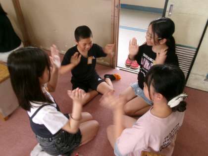 歌う前に、リズムに合わせて体を動かしてします。