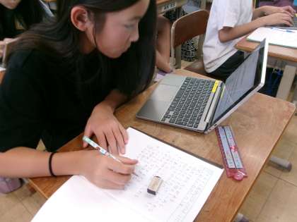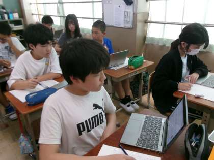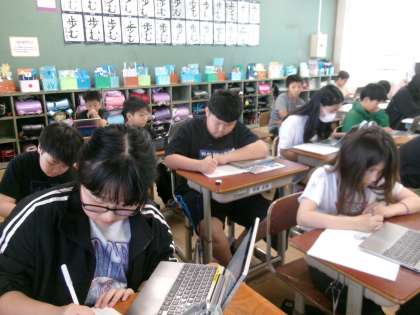 子どもたちは、GIGA端末を使って山科区や京都市の子ども支援センターや青少年活動センターを調べていました。自分事として捉えることができるように、身近な施設を調べていました。