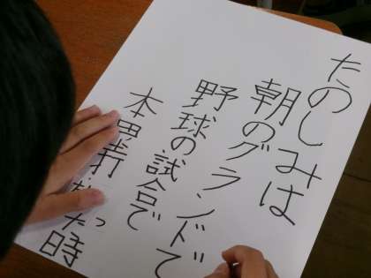 ひとつのことを表すのに、どんな言葉があるのかをインターネットで調べたり、友だちに相談したりしながら、日常的な『楽しみ』を短歌で表しました。