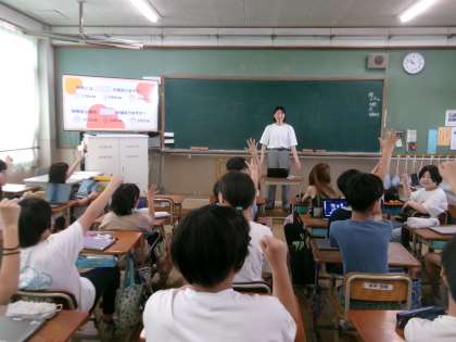 JICA海外協力隊として、開発途上国で現地の人々と共に生活し、同じ目線で途上国の課題解決に貢献する活動をしてこられた方をゲストティーチャーとしてお迎えしました。明日の修学旅行の万博で海外から日本にこられた方々と仲良くなるためにあいさつの仕方や、それぞれの国の文化や生活を教えていただきました。