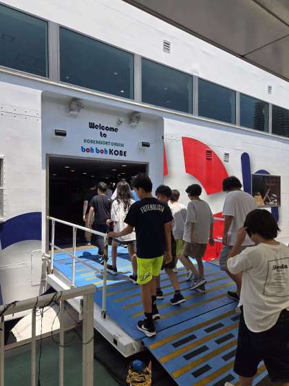 いよいよ乗船です。「船が揺れている」と船内で実感しています。