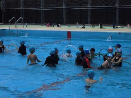 1年生もプールでの学習に慣れて、活動が広がってきました。今日は顔をつけたり、水に浮いたりする活動を繰り返しました。大文字浮き・だるま浮き・輪くぐりにも挑戦しました。最後に水中お宝さがしゲームをしました。みんなこの活動を楽しみにしています。顔を水につけたり浮いたりできるようになった子どもも増えました。暑さに負けず水遊びを楽しんでいました。